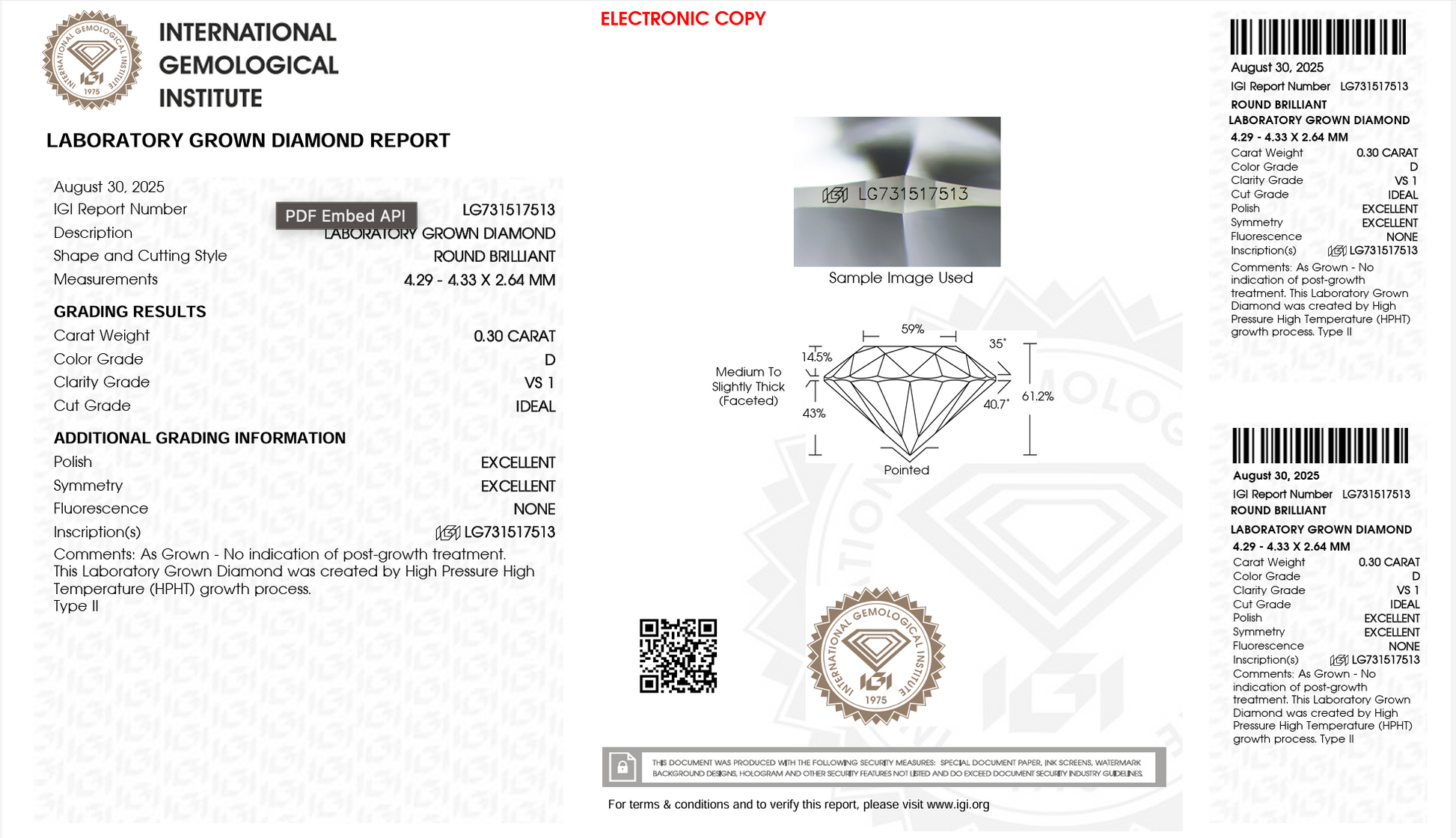 Measurements: 4.29 - 4.33 x 2.64 mm
